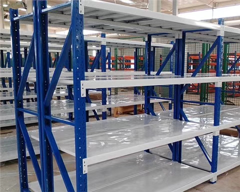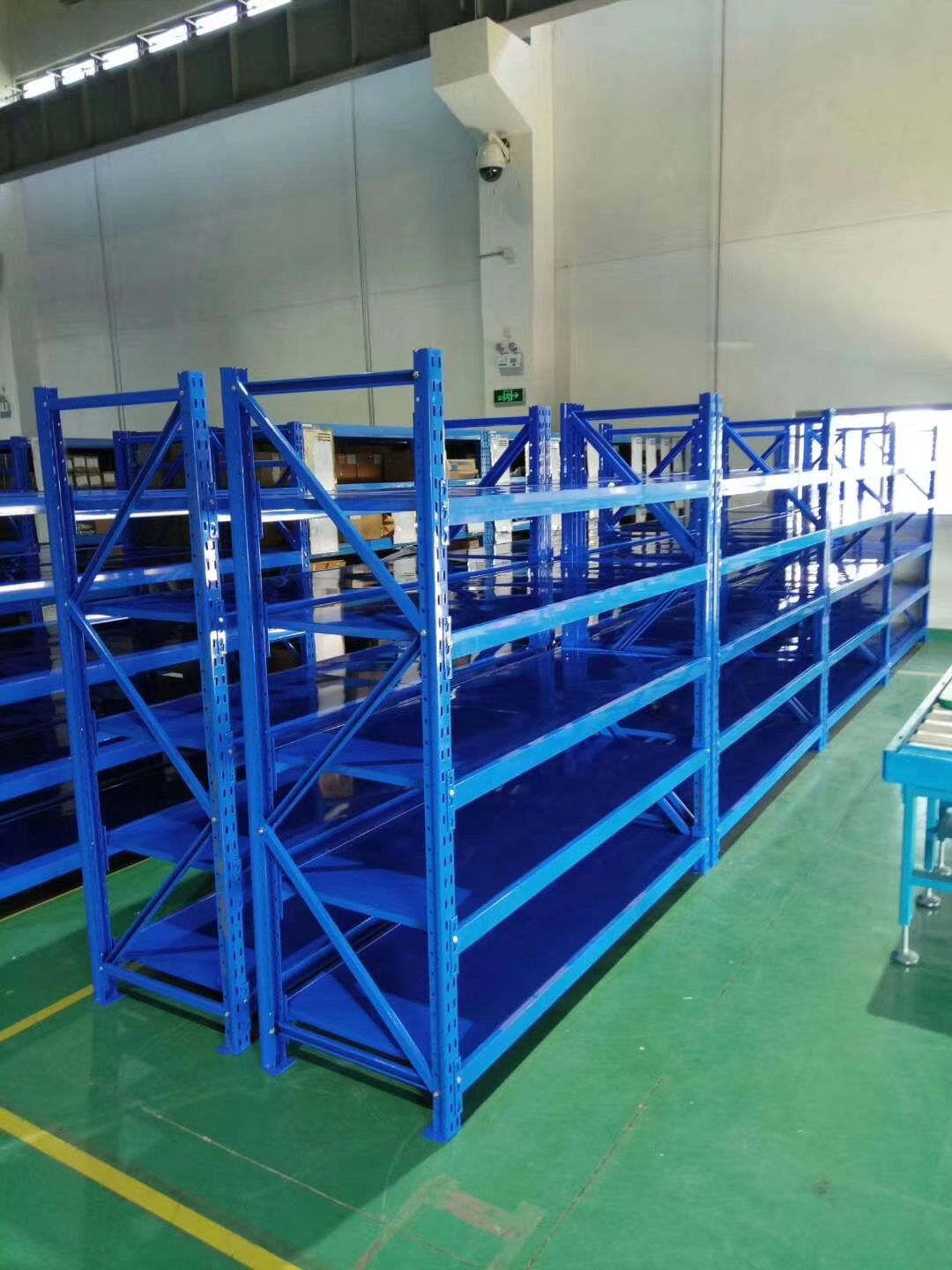 层板式货架,属于仓储货架的一种,搁板货架类型。是按货架的承载量来区分与命名的。按照这一划分原则中型货架介于中型货架和重型货架之间,故又名次重型货架。通常货架承载150kg/层-800kg层。